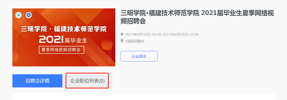 (1)点击导航栏【视频招聘会】,进入招聘会列表。选择相应的招聘会,点击查看详情,进入招聘会详情页面。