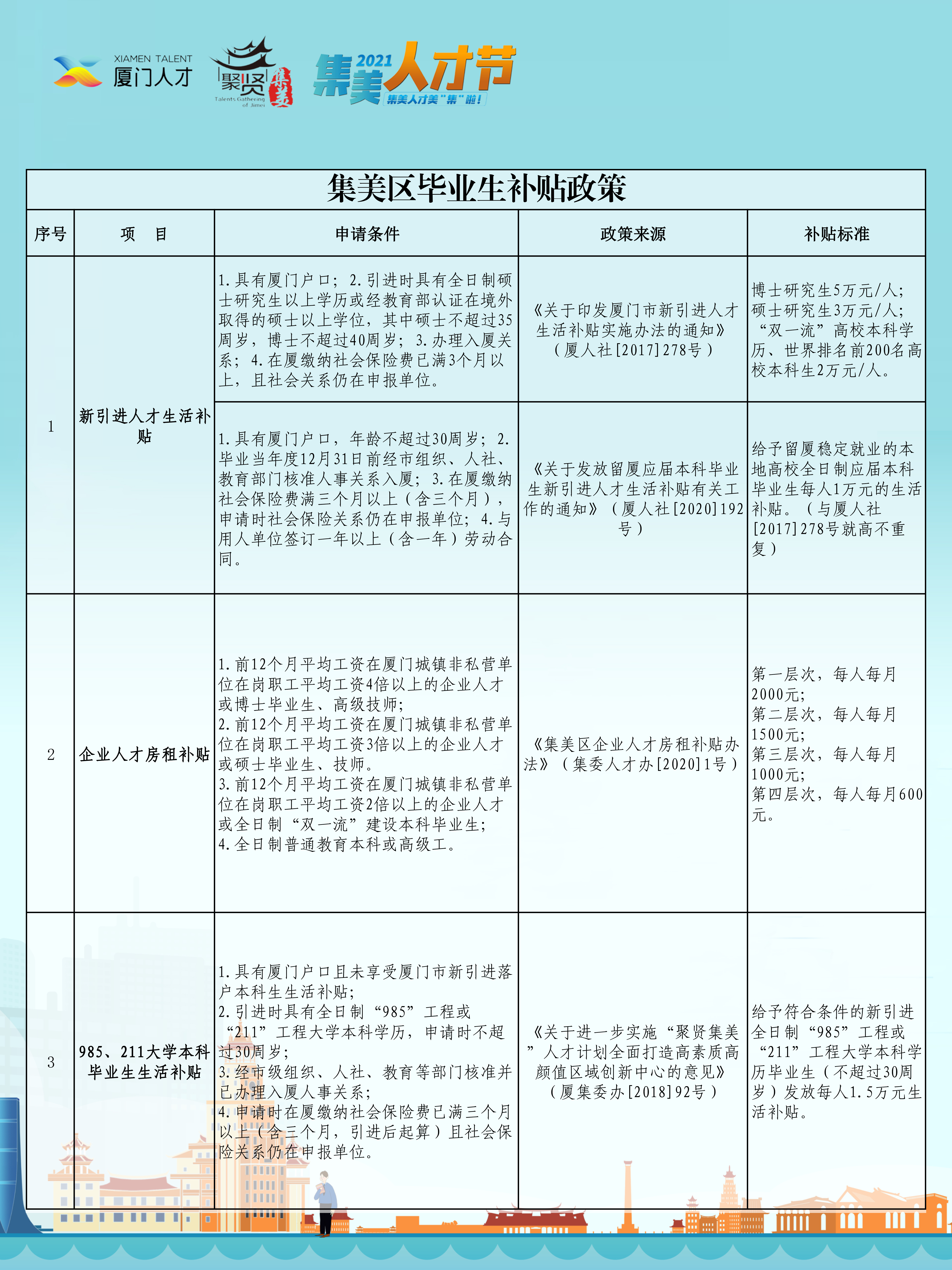 集美区毕业生补贴政策: