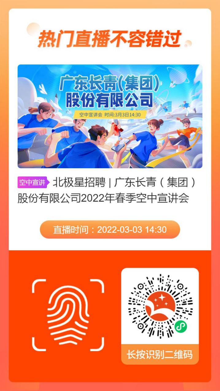 【广东长青(集团)股份有限公司】开启“2022年春季空中宣讲会”,将以直播的形式直播招聘,欢迎广大应届生参加我们的空中宣讲会
