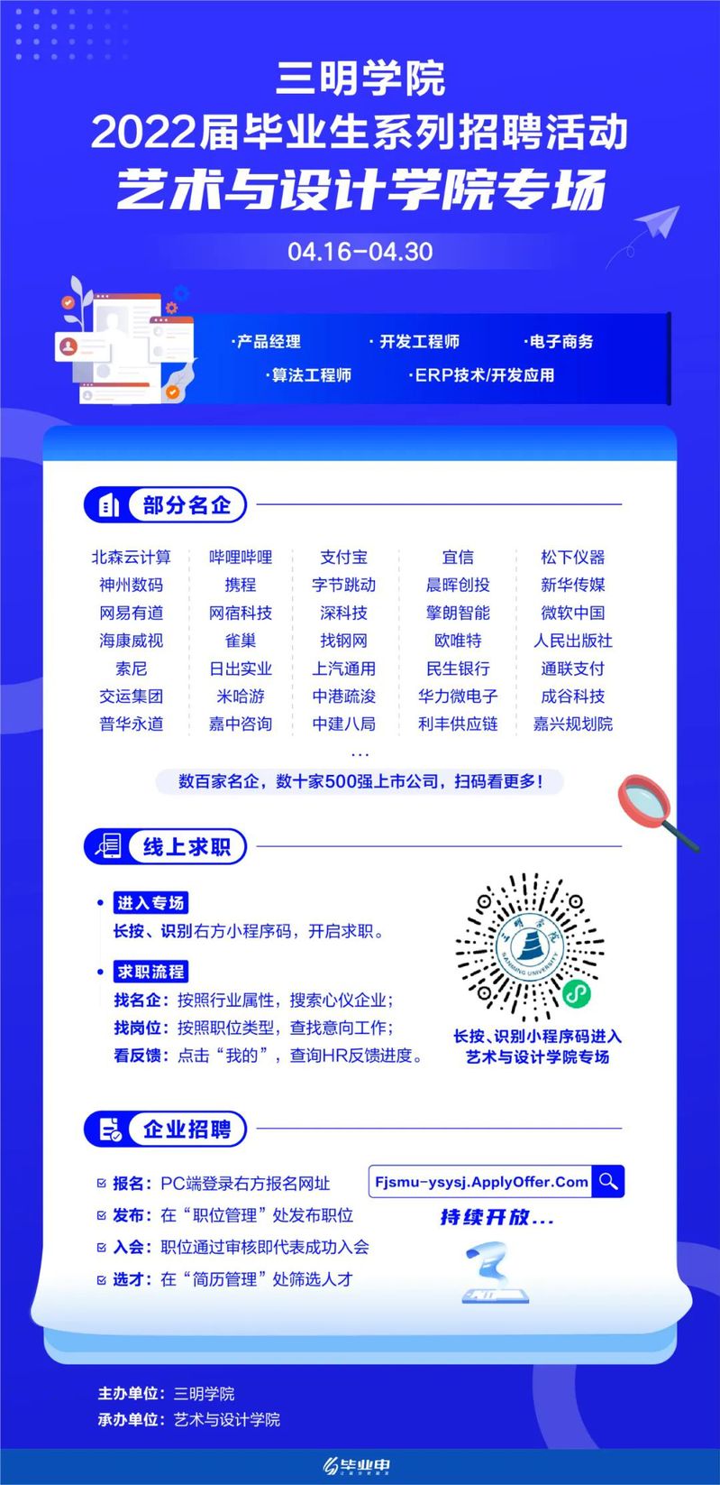 yl6809永利官网2022届毕业生系列招聘活动——艺术与设计学院专场(2022.4.16-4.30))