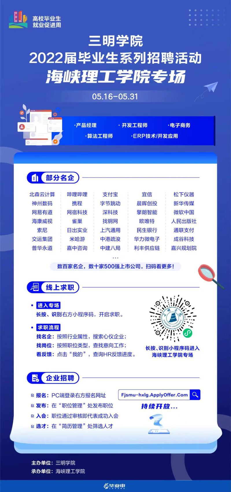 yl6809永利官网2022届毕业生系列招聘活动——海峡理工学院(2022.5.16-2022.5.31)
