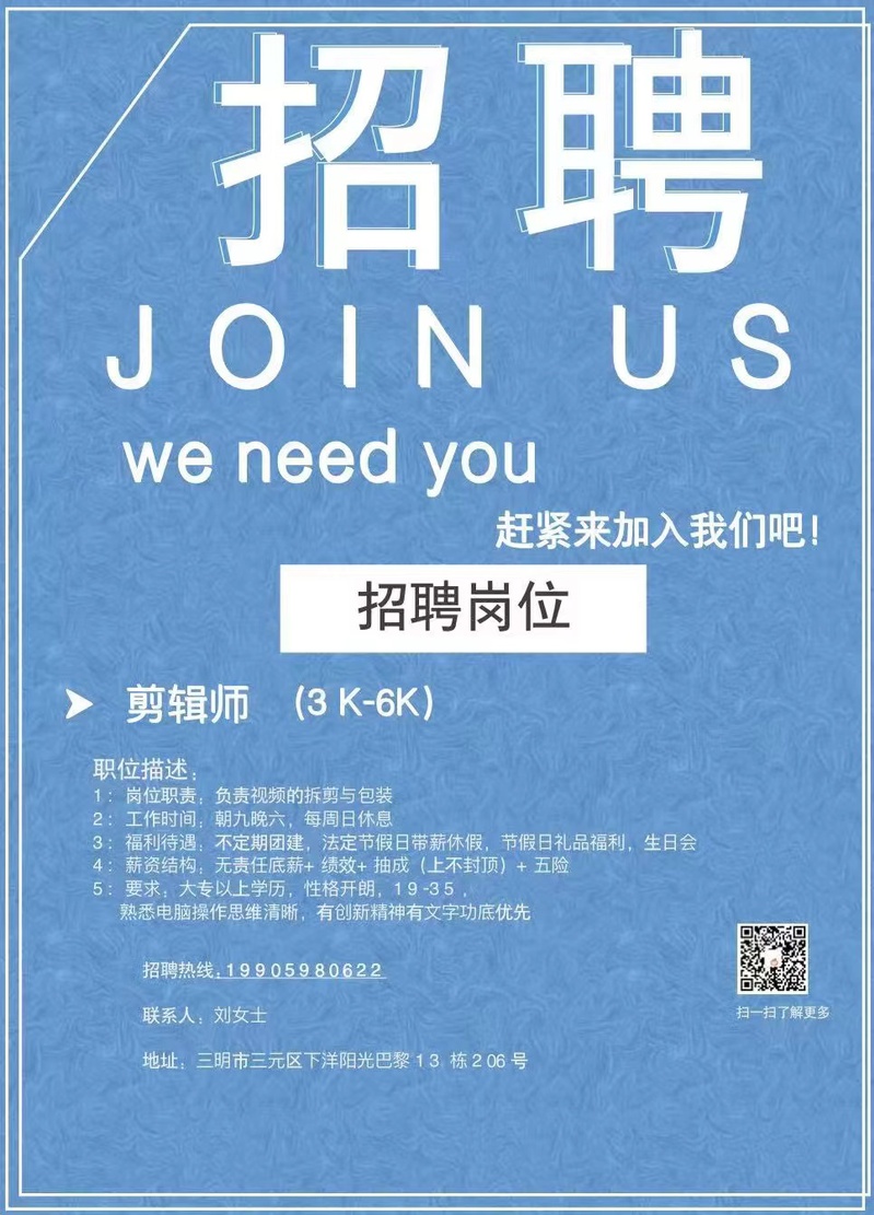 三明市小橘子文化传媒有限公司招聘信息