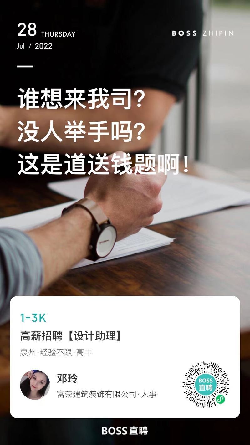 福建富荣建筑装饰工程有限公司招聘设计助理