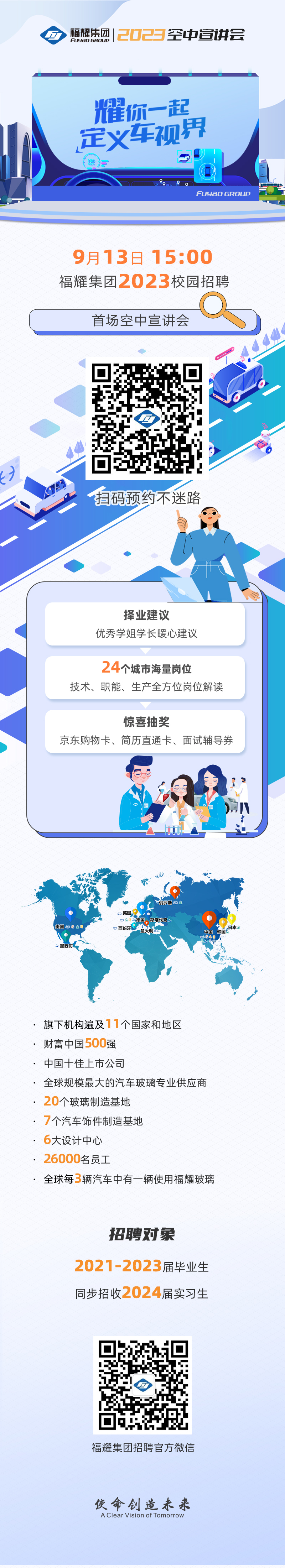 福耀集团2023年秋季校园招聘空中宣讲会(9月13日15:00)
