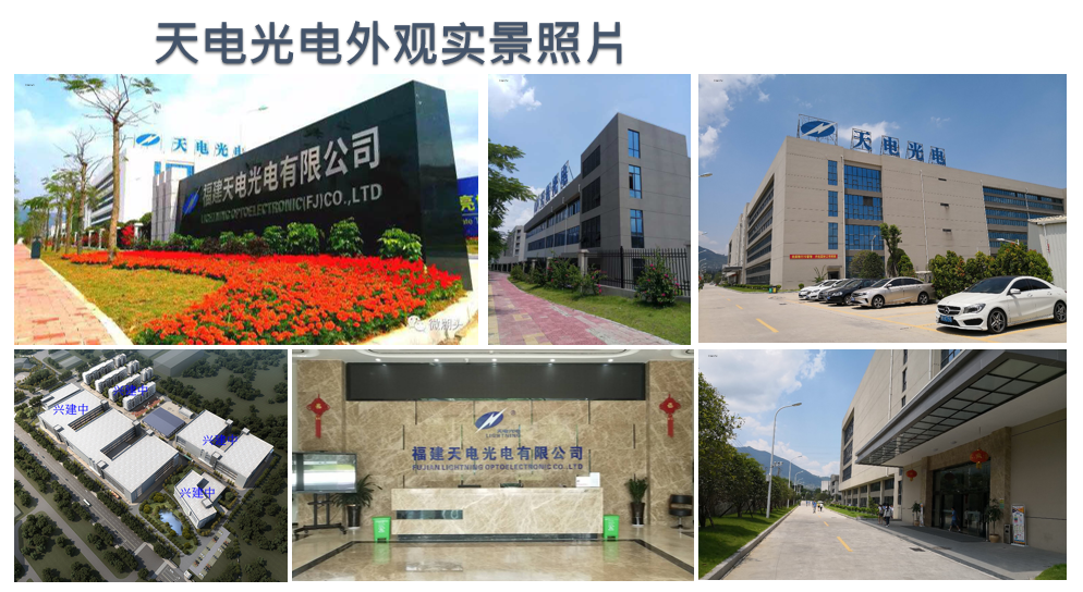 公司位于福建省泉州市安溪县湖头镇光电产业园,自建150亩工业区一期已完工并投入使用,近几年公司实现跨越式发展,目前在职员工1700余人,年产值约15亿元。是国家级的高新技术企业,在国内LED封装企业排名前三,并多次入围“中国LED白光封装最具竞争力的前3强”。2018年被评为“年度备受员工尊敬企业” 天电光电一直注重产品的自主研发与创新,目前拥有数十项发明和实用新型专利。多项专利已获授权,并入选泉州市新一代信息技术龙头企业!