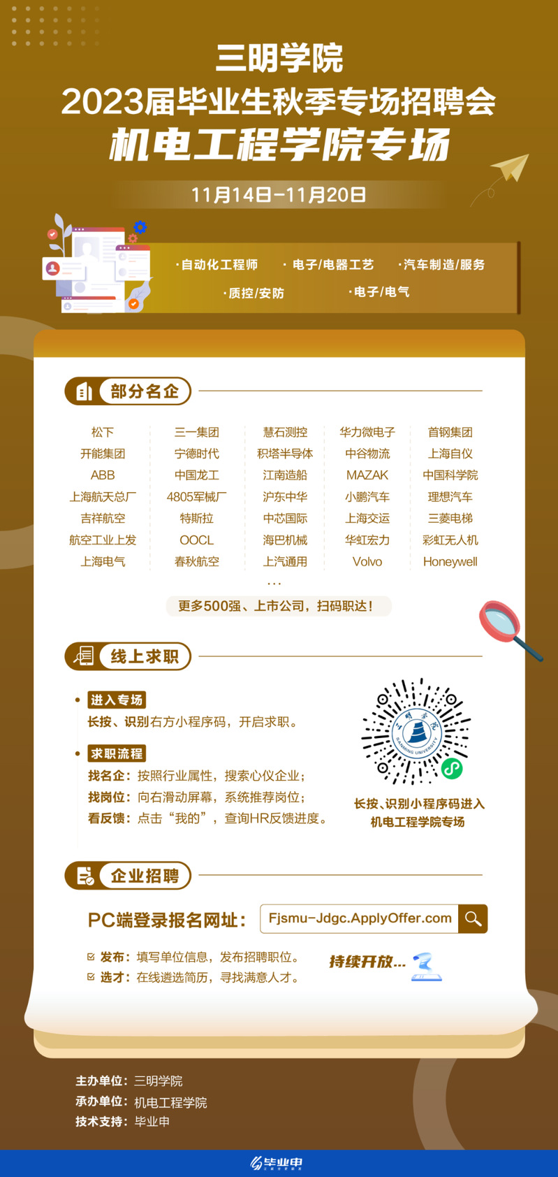 yl6809永利官网2023届毕业生秋季专场招聘会机电工程学院专场(11.14-11.20)