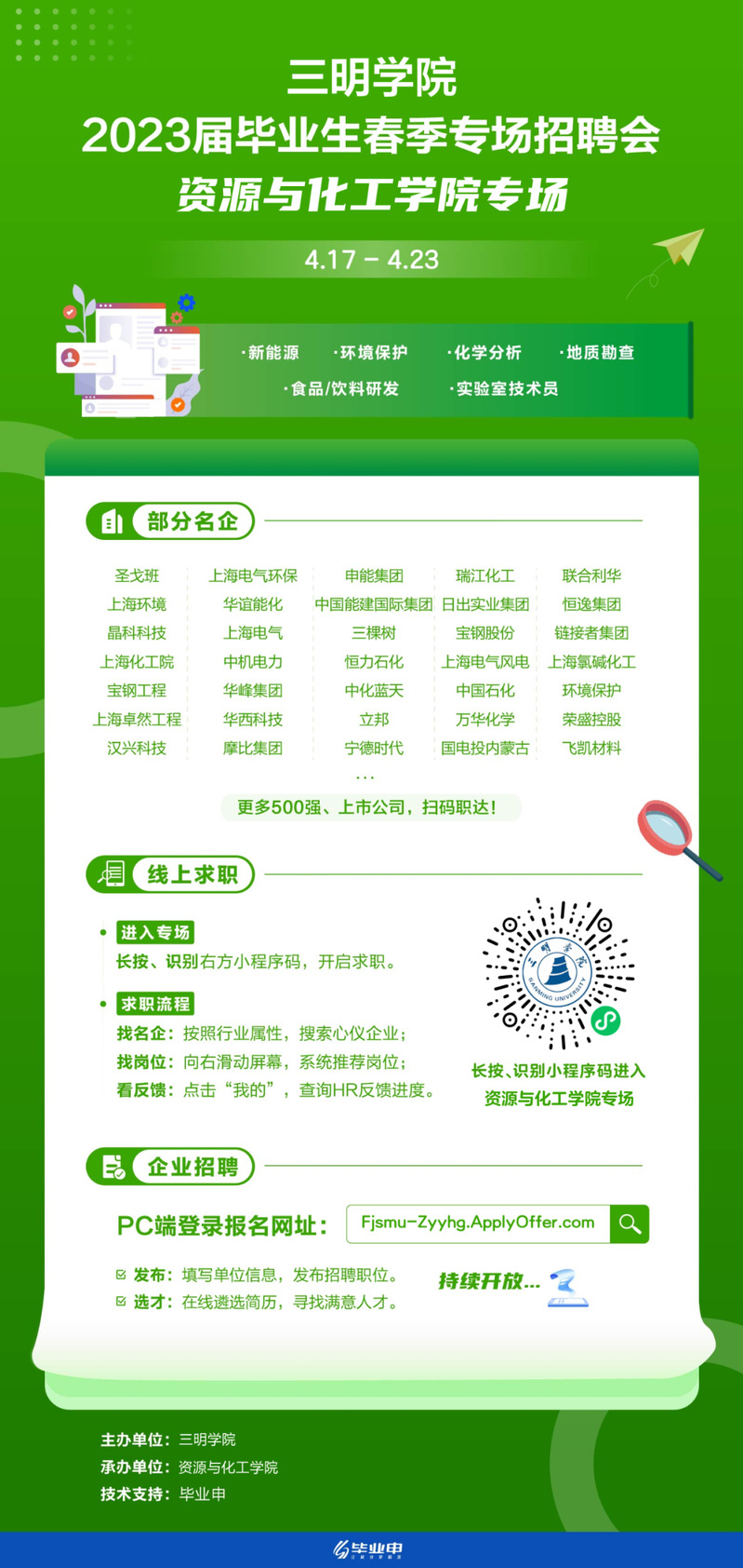 yl6809永利官网2023届毕业生春季专场招聘周——资源与化工学院专场(4.17-4.23)