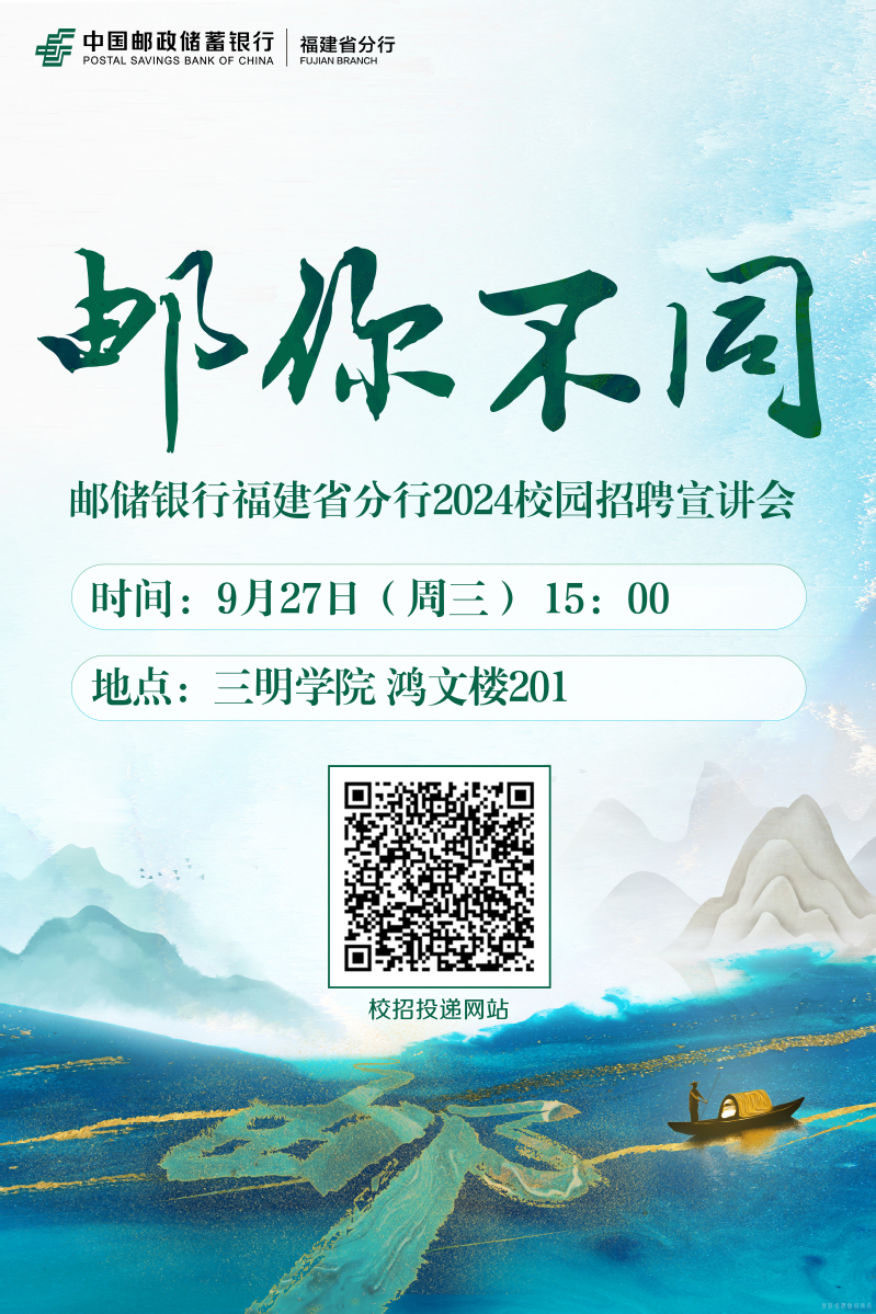 中国邮政储蓄银行福建省分行2024校园招聘宣讲会 (2024.9.27 15:00 鸿文楼201)