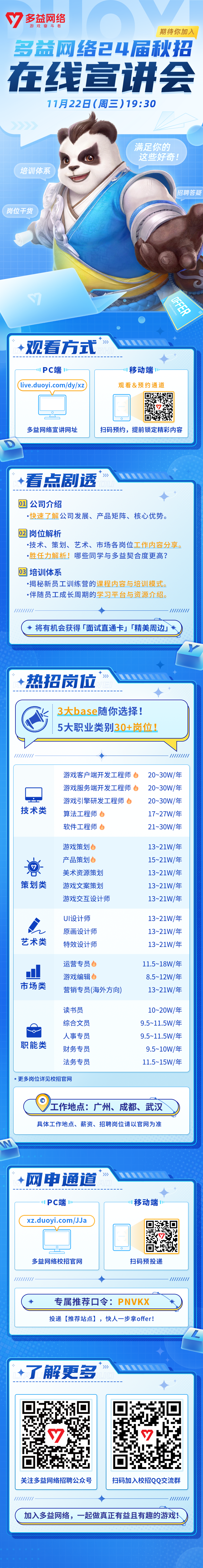 多益网络24届秋招在线宣讲会(11月22日19:30)