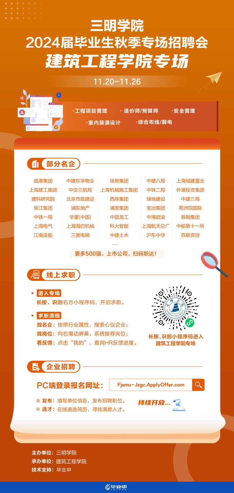 yl6809永利官网2024届毕业生秋季专场招聘会——建筑工程学院专场(2023.11.20-11.26))