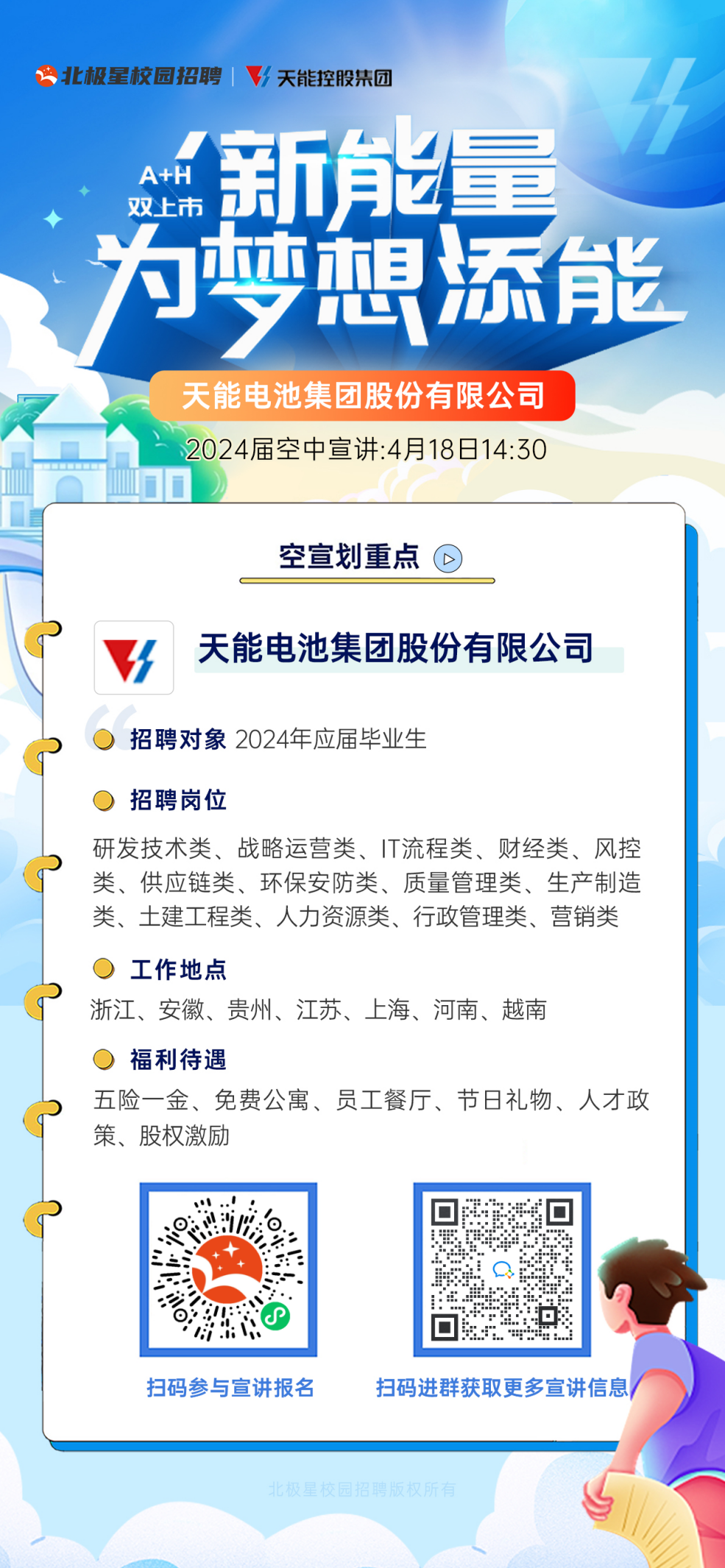 天能控股集团始创于1986年,发源于“绿水青山就是金山银山“理念诞生地一一浙江湖州。天能从动力电池生产制造起步,致力于成为全球领先的绿色能源系统解决方案商,核心业务包括新能源电池系统、资源循环利用和现代服务业,在全国20多个省建立160余家子公司,近3万名员工,全产业链带动近150万人高质量就业。在香港和上海两地上市,是行业首家拥有“A+H”双上市品牌公司。