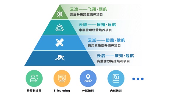 员工是创造的主体,白云电气集团视员工为公司持续进步的不竭动力,关注员工与企业共同发展,为了科学有效地识别选拔具备培养潜质的战略人才,建立白云产业群战略人才梯队蓄水池,特此搭建了三位一体的“云”系列人才发展项目。为了保证战略人才培养的针对性和有效性,采用以上带下,以下促上的方式,联动落地企业业务发展要求,促进各层级人才一体化发展,实现人才培养成果的有效可识别产出。
