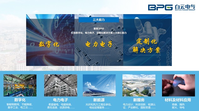 白云电气集团正以坚实的产业、完善的产品链为根基,以“绿色能源、美好生活”为使命,聚焦数字化、电力电子、新服务、新能源、材料及材料应用、成套设备六大业务板块,助力人类社会可持续发展。
