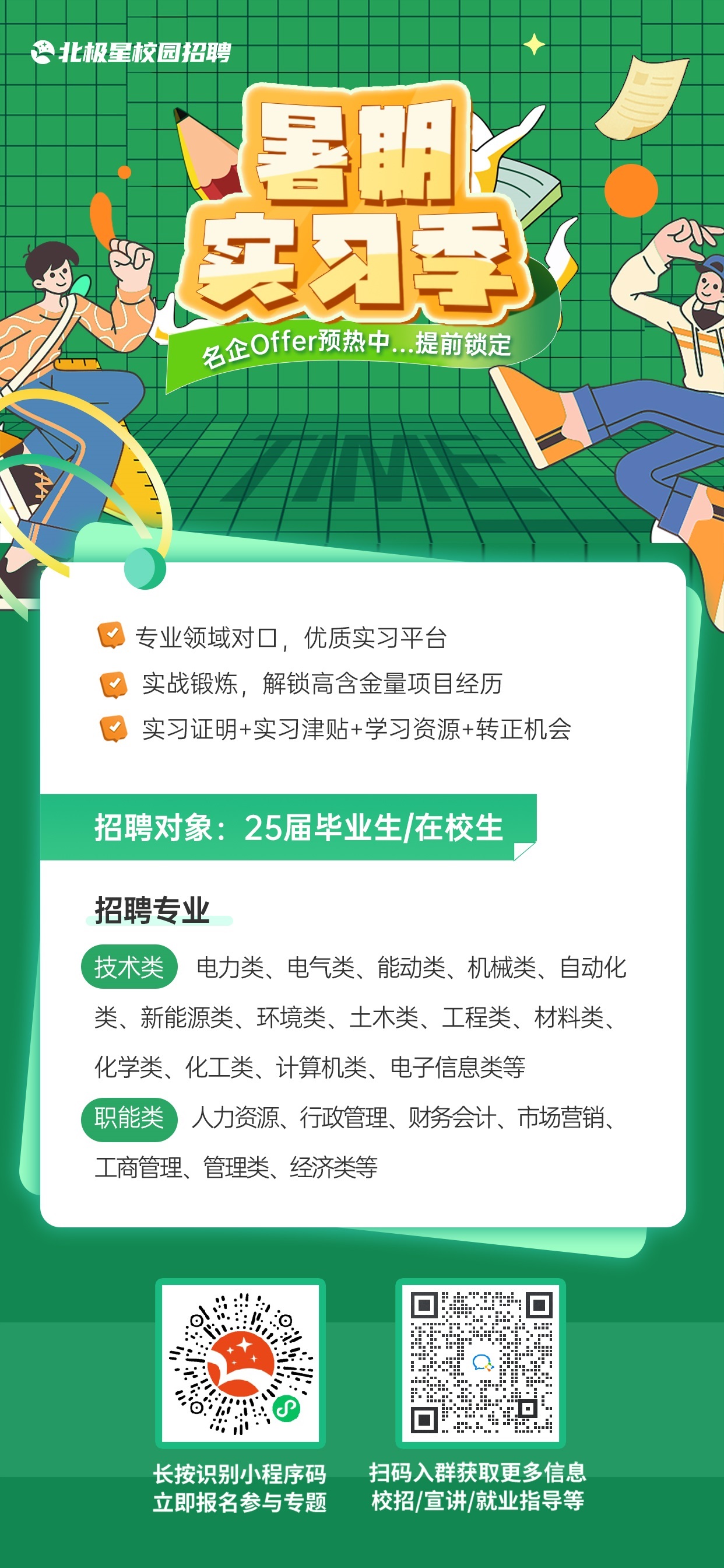 25届毕业生/在校生【招聘专业】 技术类岗位>>电力类、电气类、能动类、机械类、自动化类、新能源类、环境类、土木类、工程类、材料类、化学类、化工类、计算机类、电子信息类等
