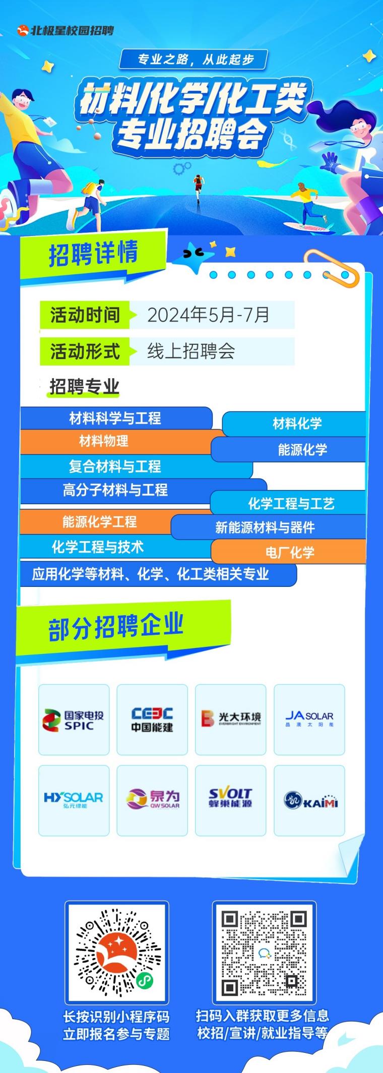 中国能建、中国电建、光大环境、中化学、TCL环保等,70+国企名企,材料类、化学类、化工类相关专业岗位热招中,招聘职位100+……