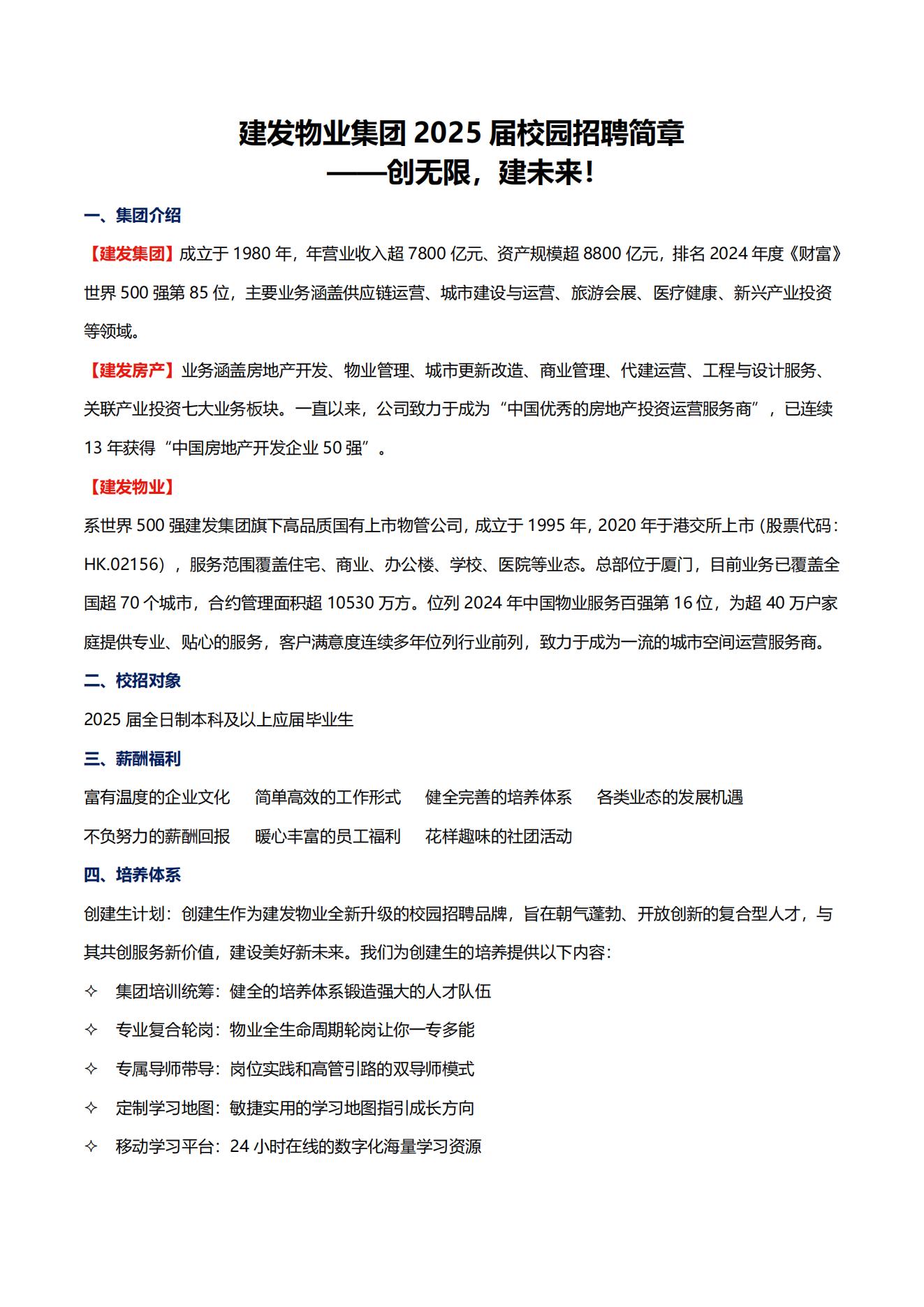 建发物业2025届校园招聘简章