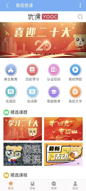 1.打开客户端易班app并登录账号,点击“易班优课”或“我的”进入优课课群。