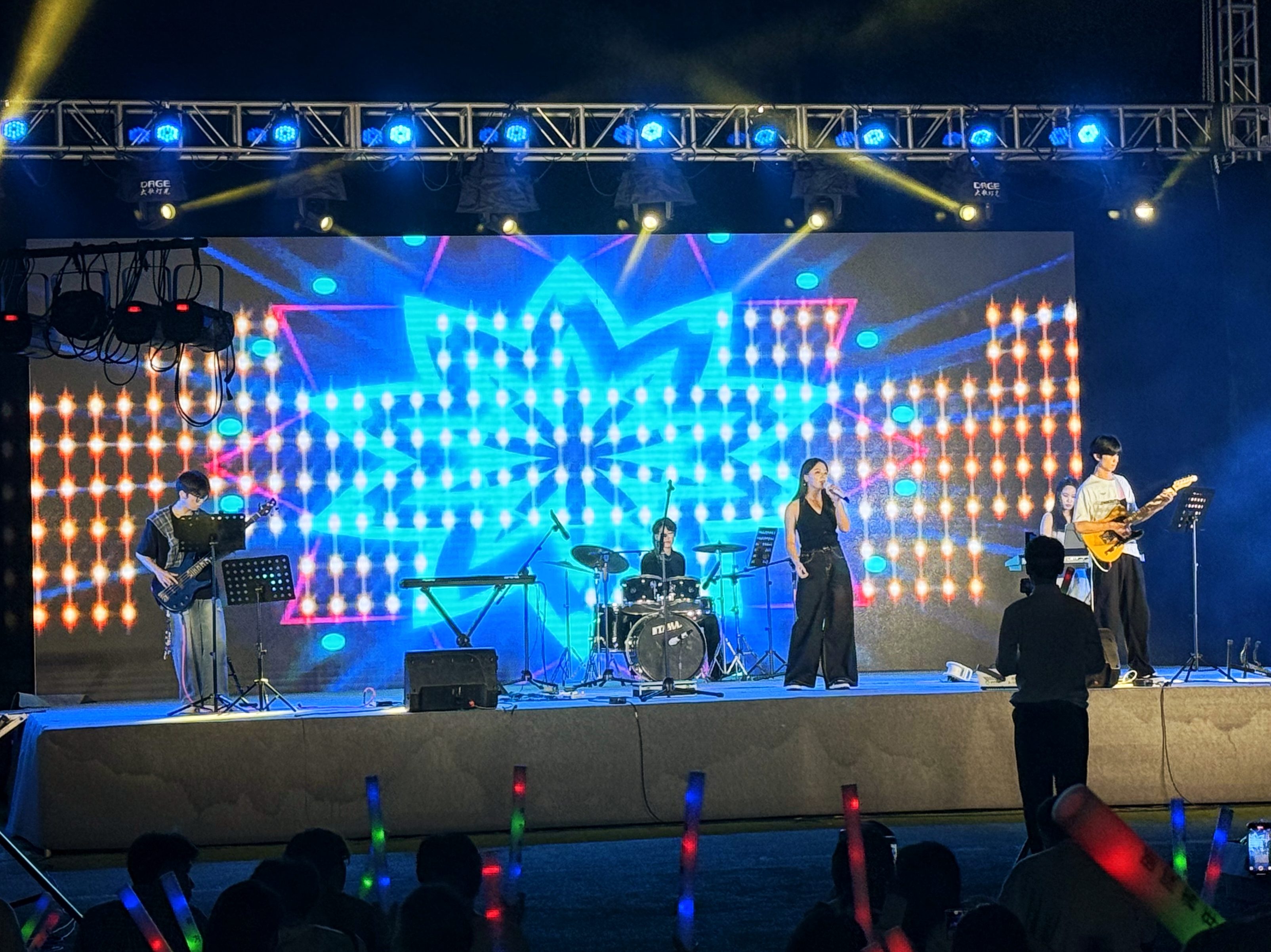 音乐节节目精彩纷呈,《彩虹的微笑》《快乐女孩》等充满青春活力的曲目点燃了现场的热情,唤醒了在场每一位观众的共鸣。特别的点歌环节,熟悉的旋律承载着同窗情谊、师生情谊和专属的校园记忆,在夜空中流转传递。这场音乐节,不仅是毕业生们展示风采的舞台,更成为了全校师生共同珍藏的青春见证。每一个音符,每一句歌词,都凝结着大学时光的欢笑与泪水,奋斗与成长。