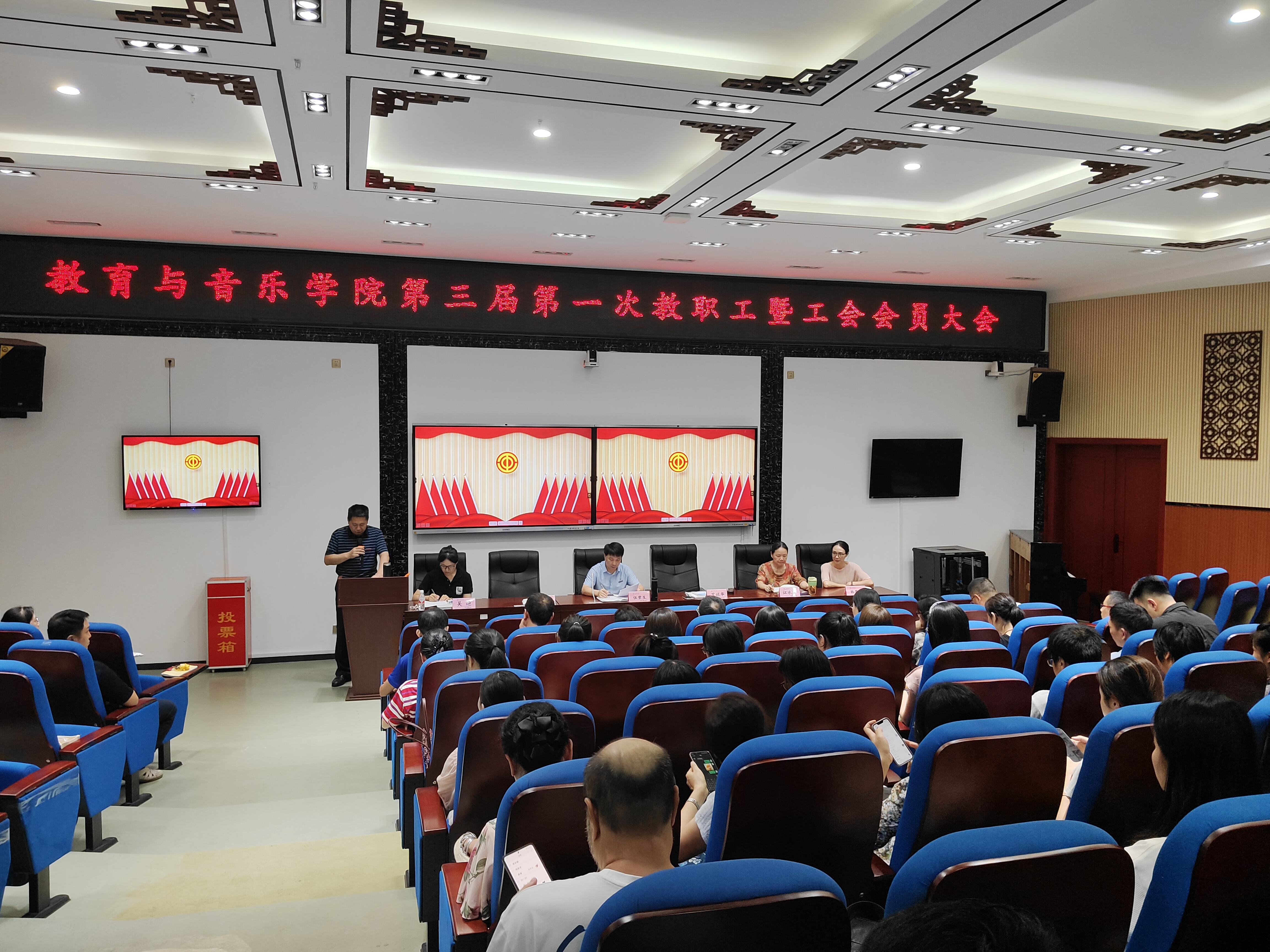 大会在庄严的国歌声中拉开序幕。在第一次全体会议上,会议听取并审议了由院党委副书记缪大旺同志所作《教育与音乐学院工会工作报告》。随后,会议听取并审议院长艾述华同志所作《教育与音乐学院工作报告》,报告回顾了学院五年来在学科建设、人才培养、服务地方等方面取得成绩,并深入分析了学院发展中存在的差距和不足,为下一阶段的工作提出了宝贵意见。