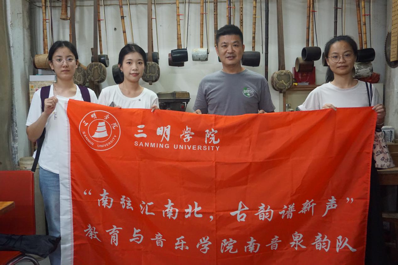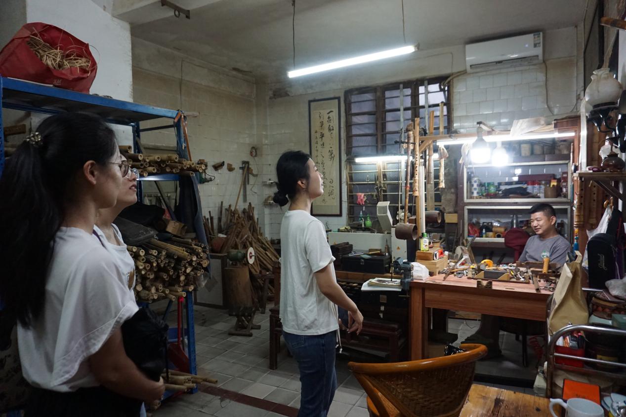 实践队首先拜访了资深制作人杜志阳,围绕南音乐器的制作与演奏展开深入探讨。在杜志阳的细致讲解下,队员们了解到南音“上四管”与“下四管”乐器组合的精妙构成,从材质选择到工艺打磨,每一件乐器都承载着古老的匠心。此外,双方还聚焦南北琵琶的差异,对比了两者在演奏技法上的不同侧重,以及由此形成的各具特色的音乐风格,让队员们对南音乐器的“形”与“神”有了更立体的认知。