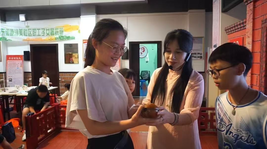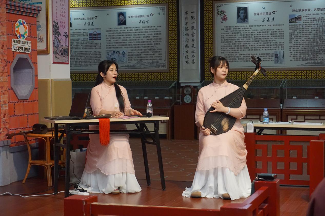 浔美社区的实践活动则让队员们与南音文化来了一次“零距离”接触。在这里,队员们采访了深耕南音教学多年的吴丽聪老师,在吴老师的指导下,亲手体验了洞箫、琵琶等南音乐器的演奏,指尖触碰间,仿佛与千年的旋律产生了共鸣。吴老师不仅向队员们系统普及了南音的历史渊源、基本乐理和文化内涵,更与大家探讨了传统与现代的融合之道。当谈及南音唱曲的创新时,吴老师以改编版《静夜思》为例,阐述了如何在保留南音精髓的基础上,融入现代审美,让古老的曲调焕发新的生命力,这一思路为队员们带来了深刻启发。