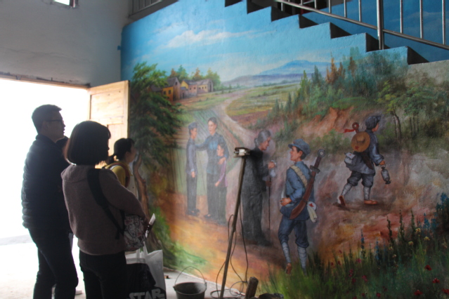 政府工作人员向小组成员介绍壁画故事