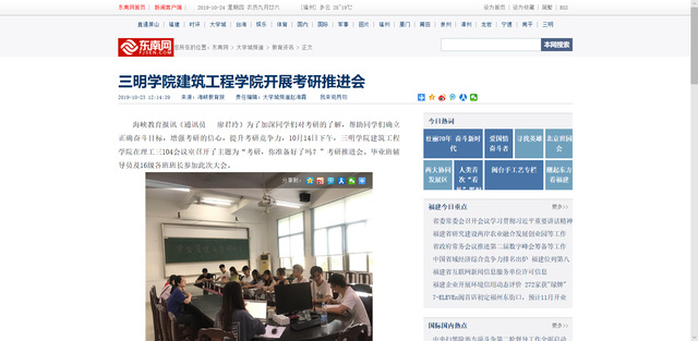 东南网2019年10月21日讯(通讯员:廖君玲)为了加深同学们对考研的了解,帮助同学们确立正确奋斗目标,增强考研的信心,提升考研竞争力,10月14日下午,yl6809永利官网建筑工程学院在理工三104会议室召开了主题为考研,你准备好了吗?考研推进会毕业班辅导员16各班班长参加此次大会。