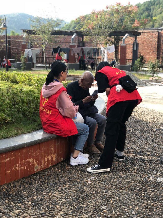 志愿者与老人聊天