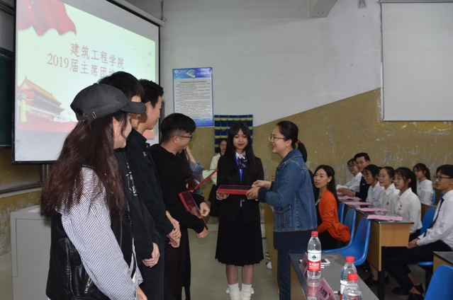 团委书记为18级主席团发放聘书此次换届大会的成功举办不仅为我院学生会主席团注入了新鲜活力,还调动了同学们的工作热情。相信新一届的主席团必定把精神落实到行动上,不断的在工作中提高自己,完善自己,将学院的工作完成的越来越好。