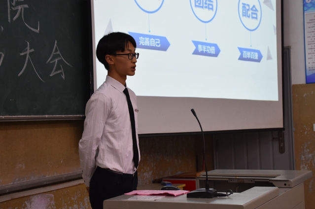 大会在全体同学奏唱团歌中拉开了序幕,主持人介绍完候选人基本情况后竞选演讲正式开始。演讲过程中,每一位同学都很好地展现出了自己积极向上的精神面貌,同时阐述了自己的特长优势,和对未来工作的设想以及为学院工作贡献力量的想法。演讲结束后,为秉承民主、公平、公正的原则,学生代表现场进行投票、唱票确定最终主席团的人选。经过激烈的角逐,大会认定张敏芳、杨智勇、罗旌昊、赵心雨为主席团成员。最终院团委书记徐晶老师对上半学期学生会的工作做出总结建议并且对新一届主席团未来的工作提出相关具体要求及美好展望。