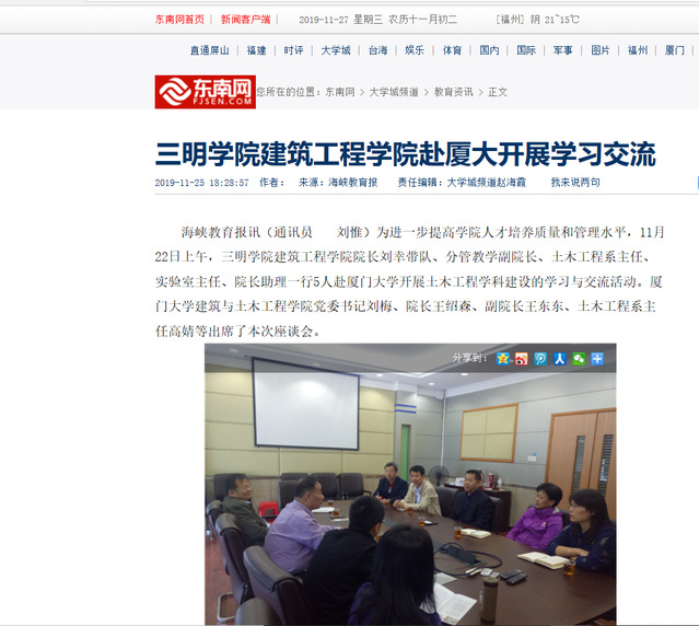 通过此次学习交流,进一步加强了yl6809永利官网建筑工程学院与厦门大学建筑与土木工程学院之间的联系,将与厦门大学对口支援建设落到实处,为yl6809永利官网建筑工程学院的学科建设和人才培养工作的发展起到了积极的推动作用。
