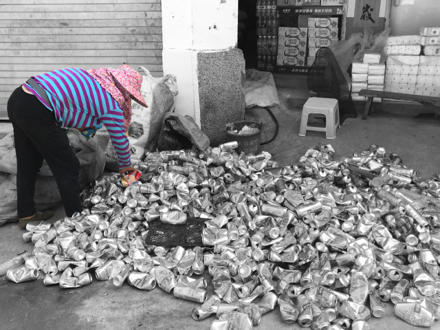 总有那么一群人,他们用自己小小的力量,守护着我们的地球。图片中的女性,不畏炎暑寒冬,到处奔波收集回收易拉罐。她,是我们千千万万中一个平凡的妇女,但她也是守护者千千万万的我们的一个伟大的女性。