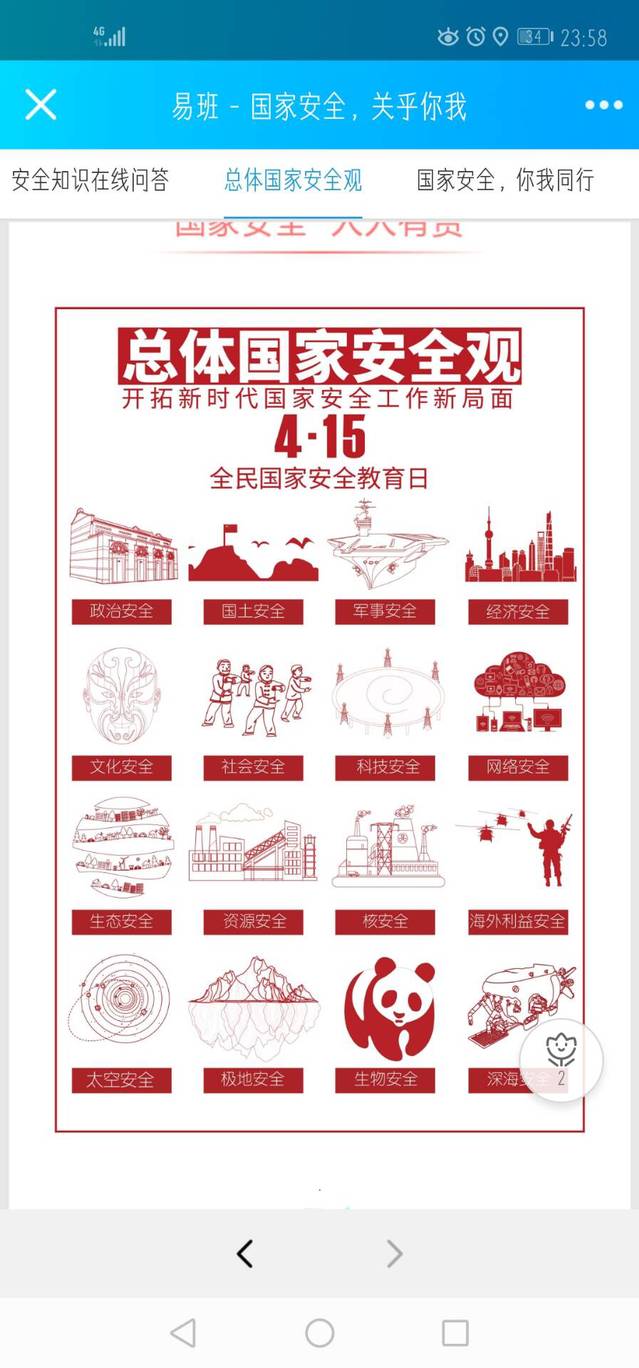 指导学生登http://dxs.moe.gov.cn/dati或关注微信公众号“中国大学生在线”参加由中国大学生在线、腾讯公司等共同组织的国家安全知识问答、安全教育条漫等活动。本次活动的目的在于以赛促学,通过完成国家安全知识在线问答的形式,使学生潜移默化的接受正确价值观念的影响。