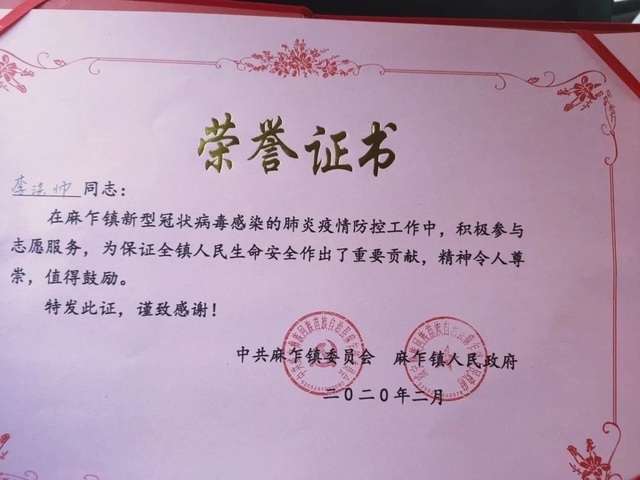 在此次疫情当中,当回到家乡得知疫情的严重性之后自己就深刻的认识到这是整个中华民族甚至是世界人民的灾难,知道省政府下令每个地级市、县、乡镇和村都卡点控制的时候找到做志愿者的途径,后来被安排到村口岗位职守。