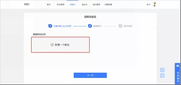 第二步编辑职位信息,职位可以新建也可以直接从已有职位中获取,编辑好职位后,可以删除职位也可以再次修改职位信息。