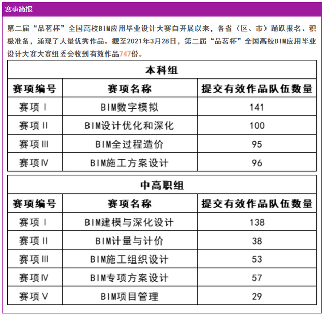 为助力学生职业技能提升,我院于2020年11月-12月鼓励学生自行主队报名参加比赛。组成了八支队伍,报名赛项涉及赛项一BIM数字建模、赛项二BIM设计优化和深化、赛项三BIM全过程造价、赛项四BIM施工方案设计。比赛的指导老师有崔秀琴、苏万鑫、张孟阳、王肖颖、蔡雪霁、黄明君、乐旭东、连跃宗、何莲桂、郑仁亮。