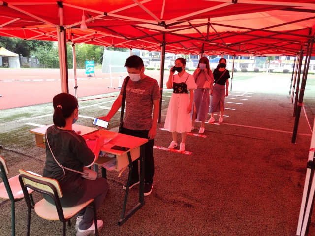 本次演练主要是针对学生开学返校报到时体温测量、健康码排查、学生入住宿舍时体温测量以及发现体温异常者工作处置流程等情况进行应急演练。