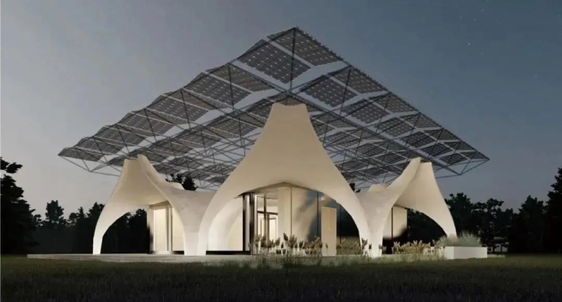 Solar Ark 3.0通过超高性能混凝土的运用,相比传统结构减少60%以上的混凝土用量。通过标准化设计,用一套模板完成UHPC壳体智能化预制。20个曲面通过308个螺栓连接,5天完成结构封顶,15天完成整体建造,建造过程无需脚手架或支模,快速建造,绿色建造,世界领先,建造过程相对传统建筑可减碳80吨以上。