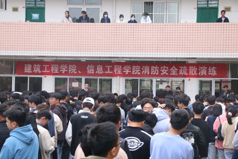 为进一步增强师生消防安全意识,提高消防安全技能和防灾自救互救能力。12月15日下午,建筑工程学院与信息工程学院在荷花苑2号楼联合开展消防安全疏散演练活动,校保卫处消防科莅临指导。