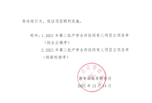 20211214日,教高司函202118号文件,公布教育部高等教育司2021年第二批产学合作协同育人项目立项名单。yl6809永利官网有23项获得立项,建筑工程学院崔秀琴、连跃宗、苏万鑫、王肖颖申报的项目获得立项。