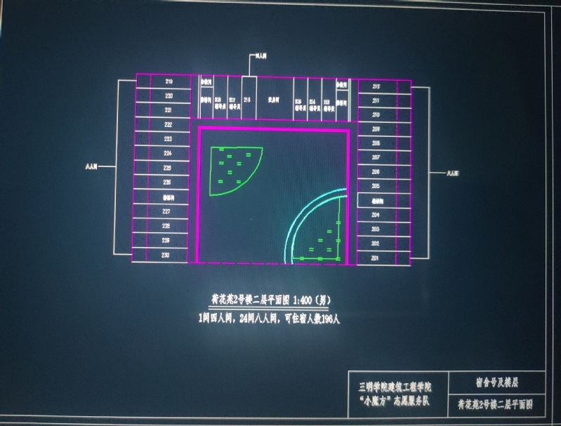 在学工部和建筑工程学院团委的指导下,“小魔方”志愿服务队80余名学生运用专业知识,使用经纬仪、全站仪、测距仪等仪器对全校15栋学生宿舍楼栋的布局、构造进行逐一勘察与详细测绘。根据测绘所得结果,历时25天,学生服务队将数据绘制成一张张精美的平面图纸。