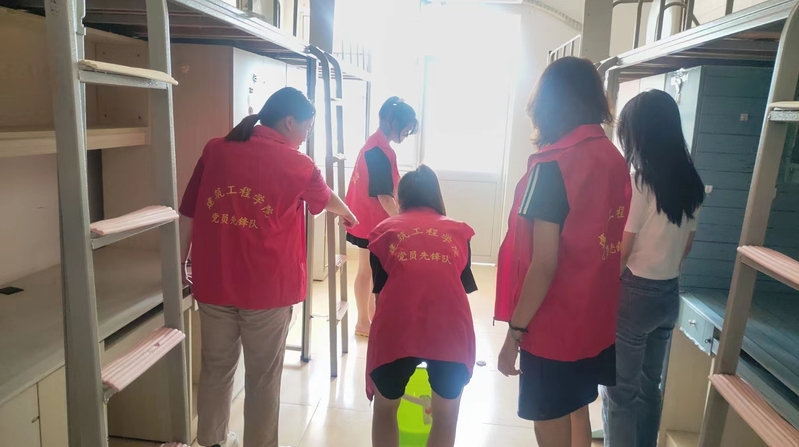 根据活动安排,学生党员和入党积极分子以小组为单位,自带清扫工具,对窗户、桌椅、床、门板等进行了细致清洁,在清洁的同时,逐一排查宿舍门窗、地板、桌椅等设施,发现问题及时汇总反馈报修,他们来回奔波忙碌着,使新生宿舍焕然一新。