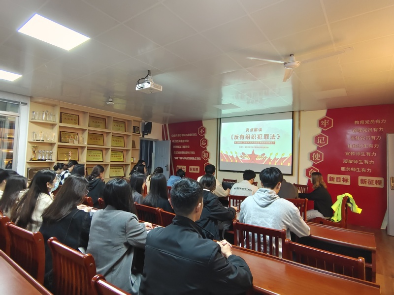 主题党日活动、班会学。为了让同学们掌握《中华人民共和国反有组织犯罪法》的出台背景和内容,采用观看教育视频、原文PPT、分享学习感悟等形式开展了26场班会,覆盖全院1093名学生。同学们纷纷表示“我们要深刻认识学习贯彻《中华人民共和国反有组织犯罪法》的重要意义,在日常言行中应自觉主动地学习法律知识、遵守法律规定,强化法纪意识,勇敢的与扰乱社会秩序的黑恶势力进行斗争”。