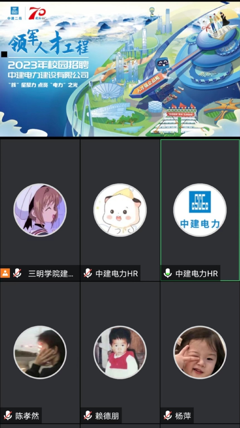 宣讲会上,中建电力建设有限公司人事经理从企业发展情况、业务领域、文化理念、人才政策、招聘岗位、职业发展、员工培养、薪资待遇等方面进行简要介绍。随后,同学们踊跃线上投递简历,并围绕自身关心的就业问题与用人单位进行了互动交流。