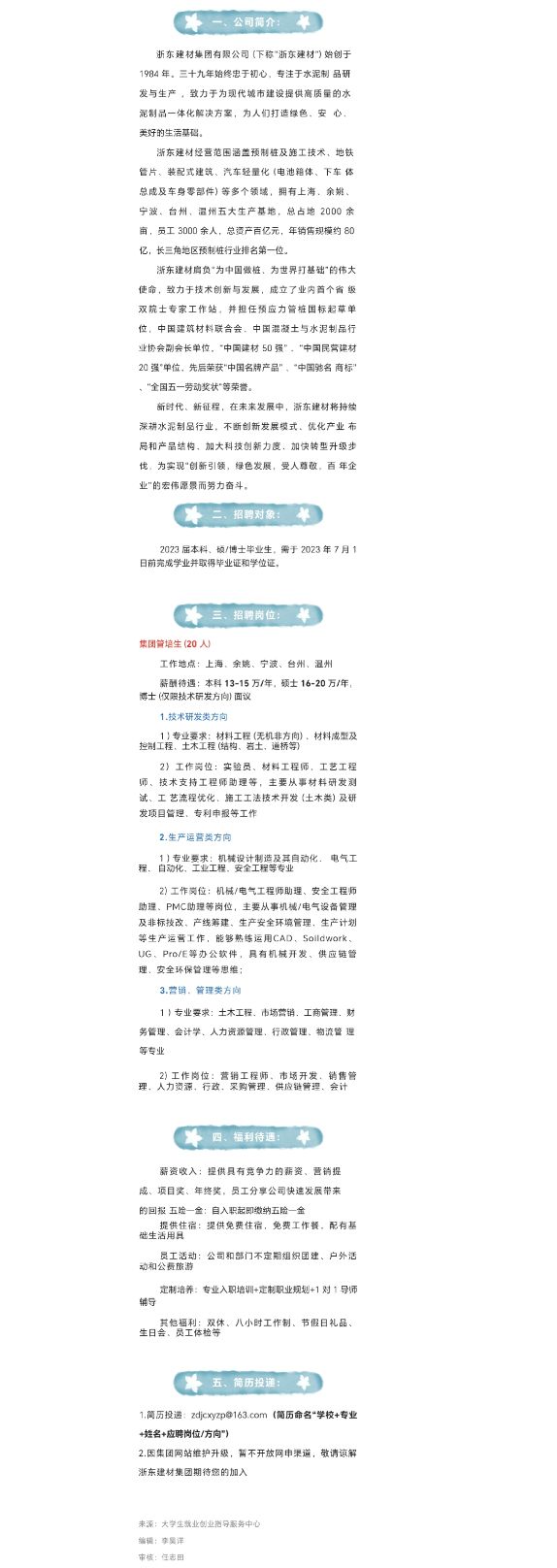 招聘信息 | 浙东建材集团23年校园招聘简章