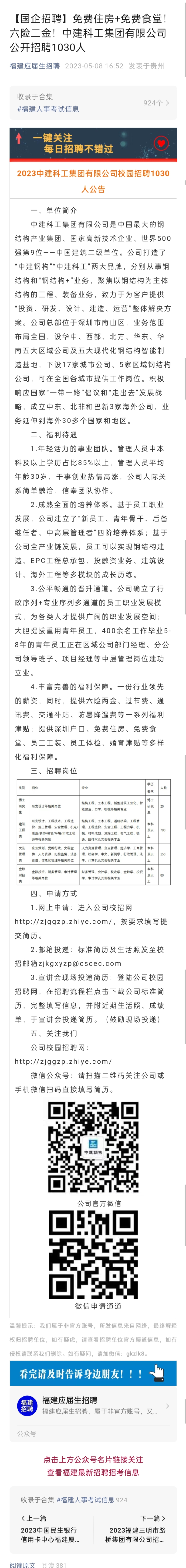 【国企招聘】免费住房+免费食堂!六险二金!中建科工集团有限公司公开招聘1030人