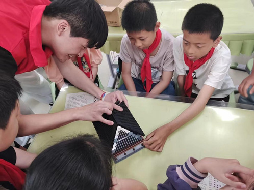 宣讲团同学们用深入浅出的语言,声情并茂地为小学生们讲述了发生在三明革命老区的红色故事,号召要从小树立爱国意识,多了解三明革命老区历史,努力学习,长大后报效祖国,同学们听得津津有味,不时爆发出热烈的掌声。接着队员们运用自身专业知识,一边讲解一边带领小学生们进行红色建筑积木搭建,从而让大家对红色建筑有了更加立体直观的认识。最后为宣传团同学们分发红色宣传手册,让大家对红色建筑背后的故事有更深的了解,厚植爱国情怀。