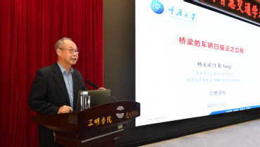 杨院士以《桥梁的车辆扫描法之应用》为题,分享了车辆扫描法的灵感起源,系统介绍了车辆扫描法的发展过程,并结合算例及试验结果证明了车辆扫描法的有效性、准确性和实用性。相比传统的人工和桥梁布置传感器监测方法,车辆扫描法设备简单,装置及维修成本极低,具有强大的移动性、机动性,可定期和实时检测桥梁,且空间讯息丰富,易于处理。车辆扫描法为我国中小型桥梁健康检测打开了一扇新的大门,它的快速性、准确性和经济性也预示着广阔的应用前景。