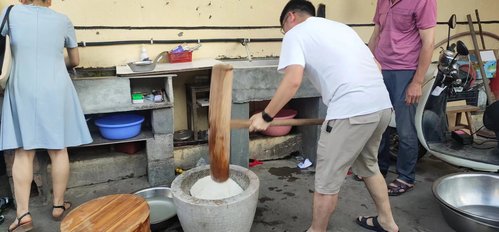活动中,老师们与当地村民们一起体验艾叶米粿的制作,通过自己的双手创造美好生活,也体会美食的来之不易。随后大家一起露天用餐,一起品尝一道道美食的同时,拉起了家常,在色香味形俱佳的菜肴中,散发着浓浓的人间烟火气,让老师们实实在在体会了大家庭的温暖。