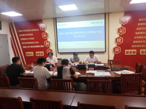7月8日上午,我院党委领导班子召开巡察整改专题民主生活会。校党委巡察组组长张新文同志到会指导,建筑工程学院党委领导班子成员参加会议,会议由建筑工程学院党委书记陆发信同志主持。
